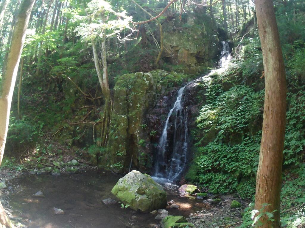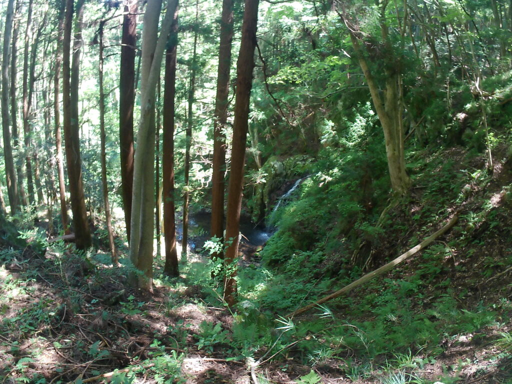 孫四郎滝への分岐。登山道から外れ左へ下っていくと滝が現れます