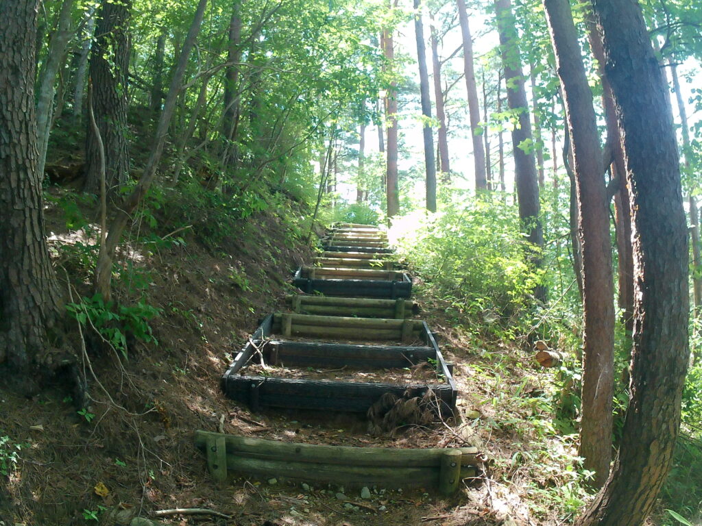 ひたすら階段を登っていくと、一度舗装路を横断。眺めの丘は車で行けるのかも、、、