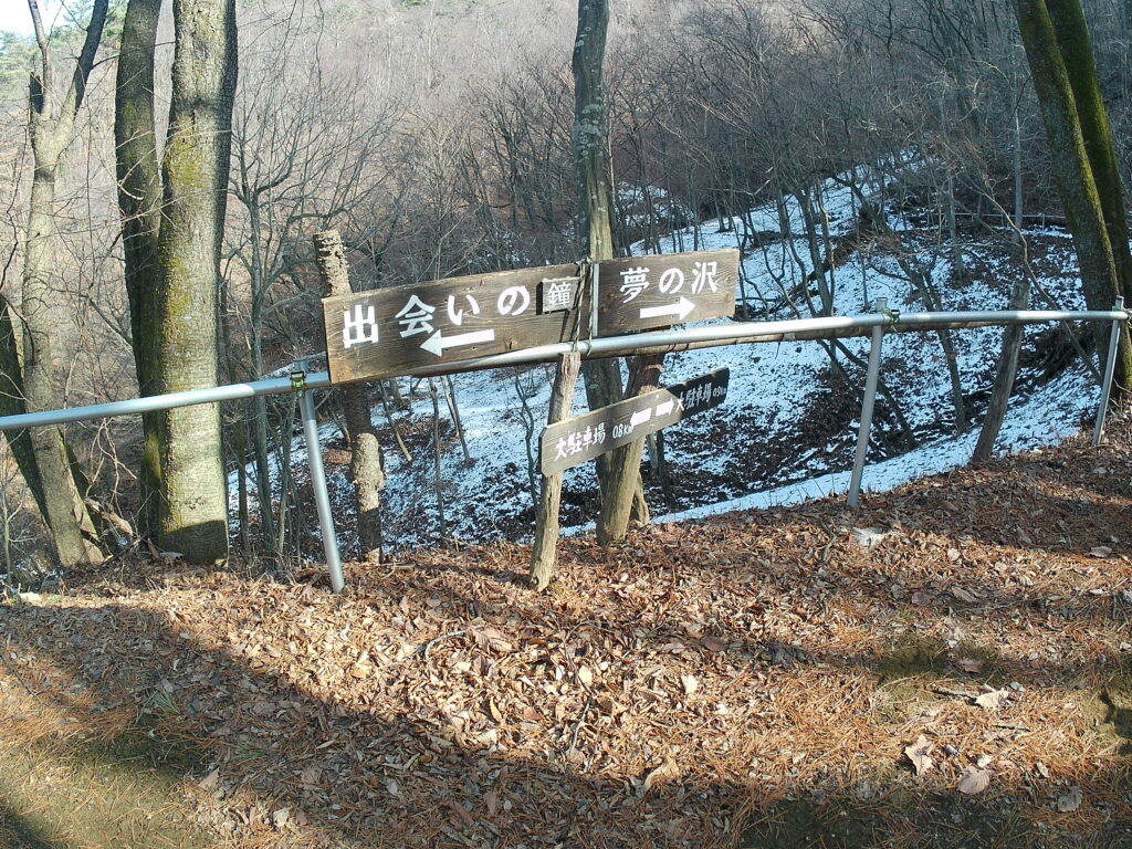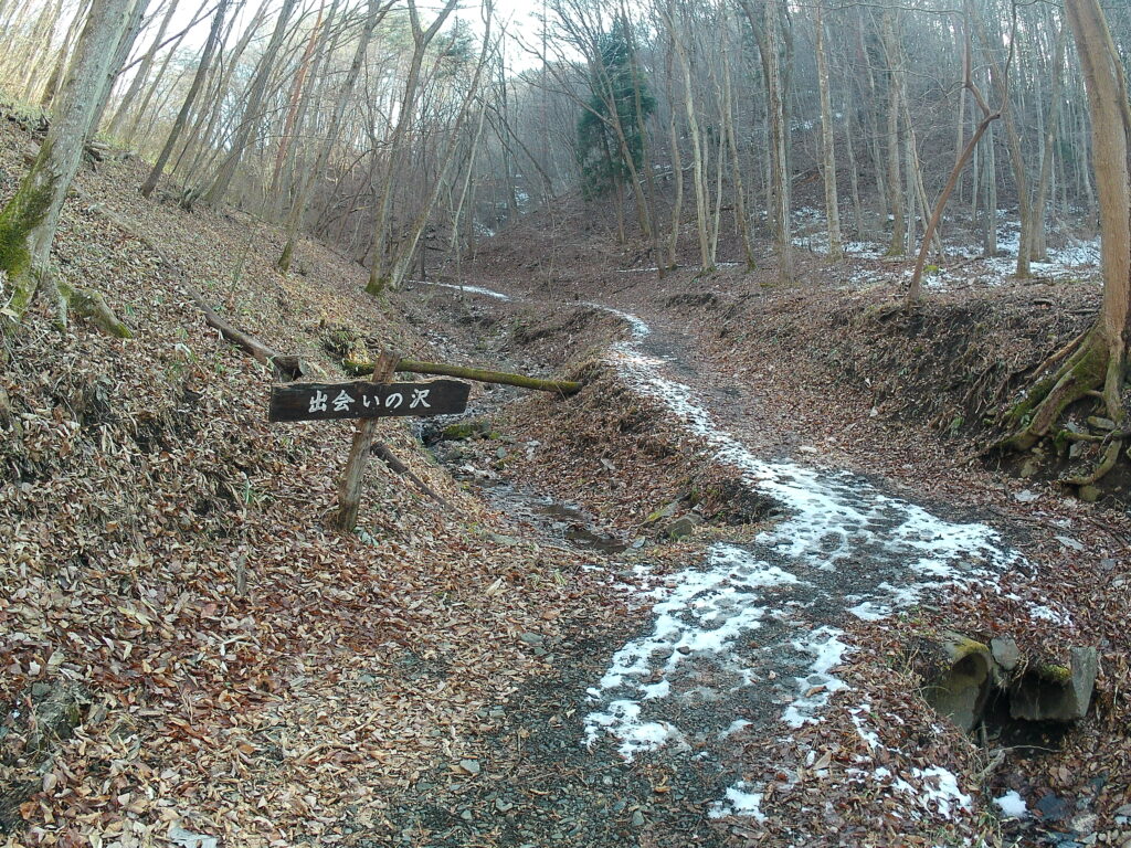 沢沿いに進んでいくと看板。出会いの沢という名前がつけられています