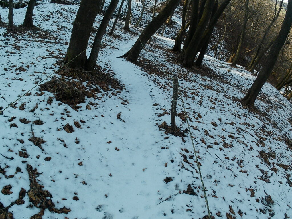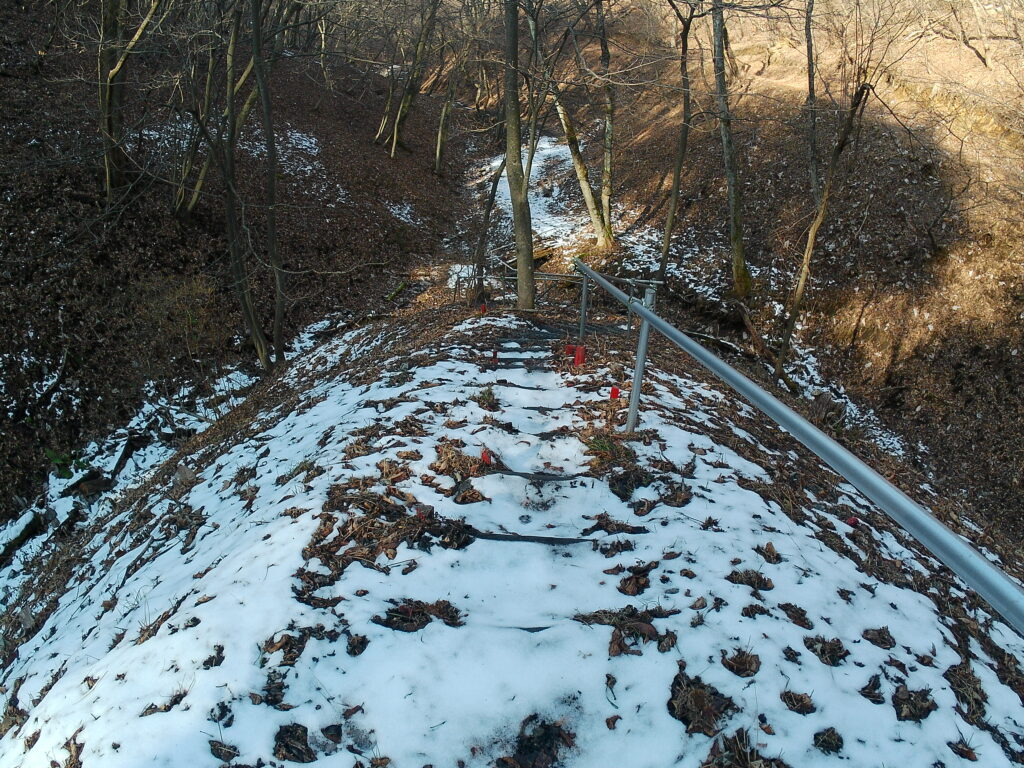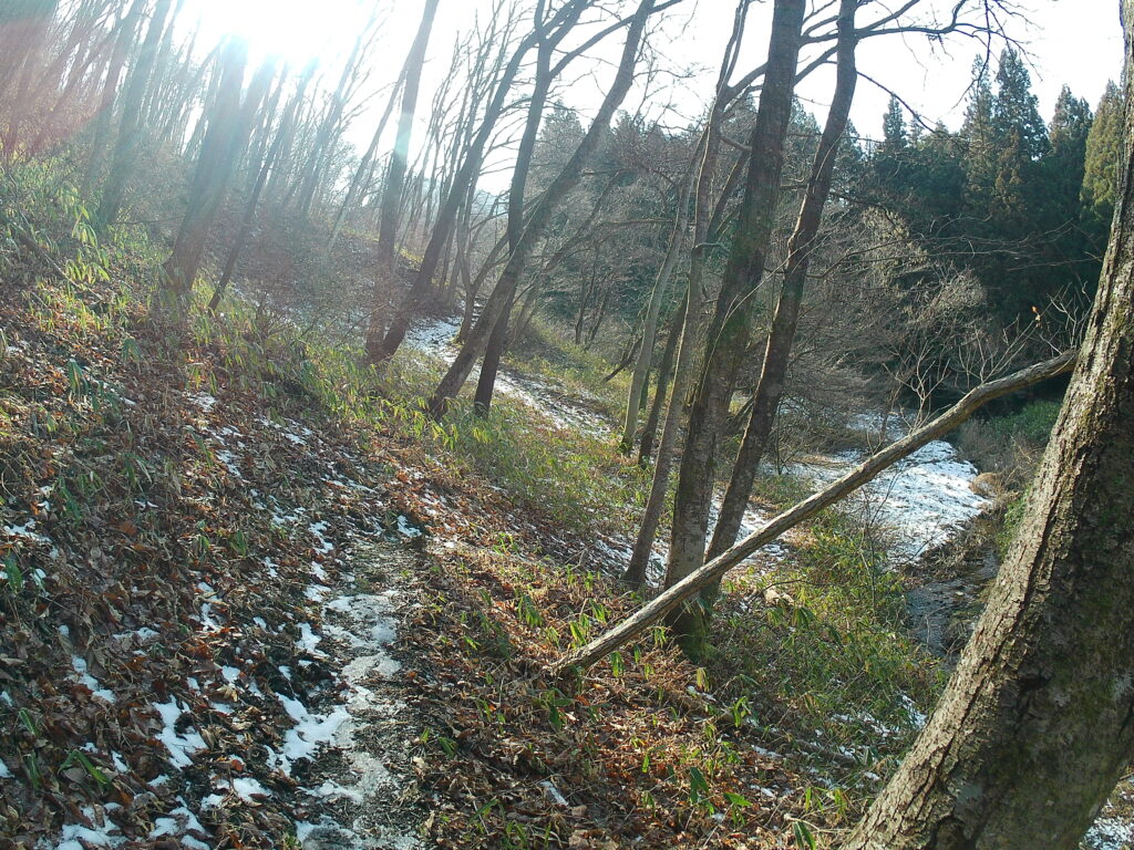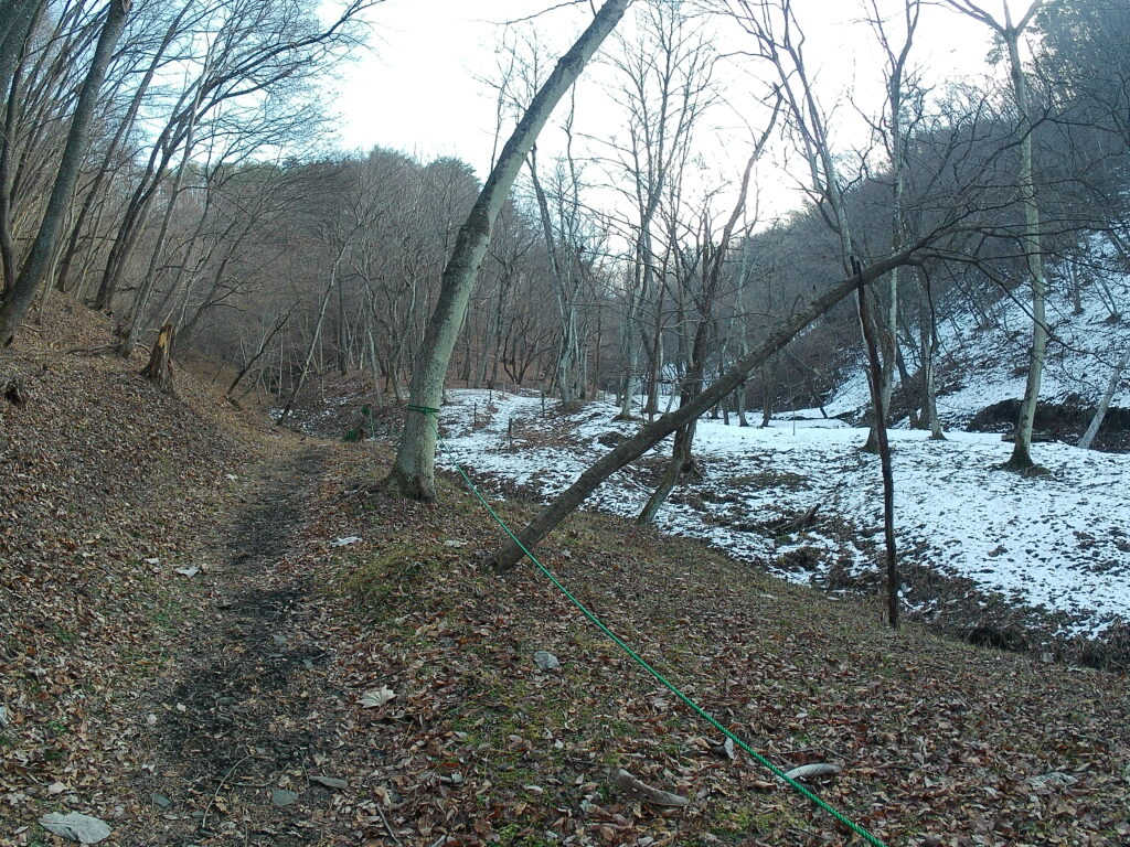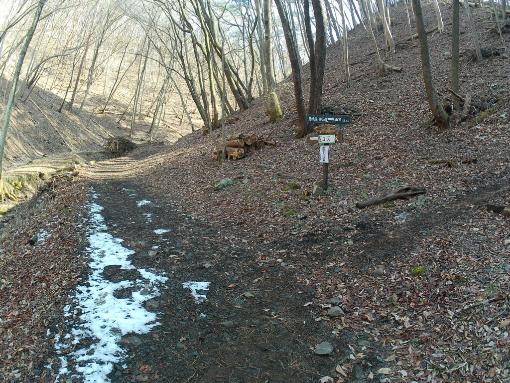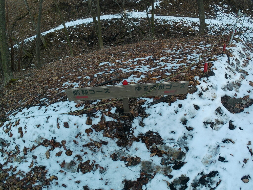 日陰は雪がちらほら残っているようで。分岐を右で一番外側の尾根コース、今回はまっすぐです