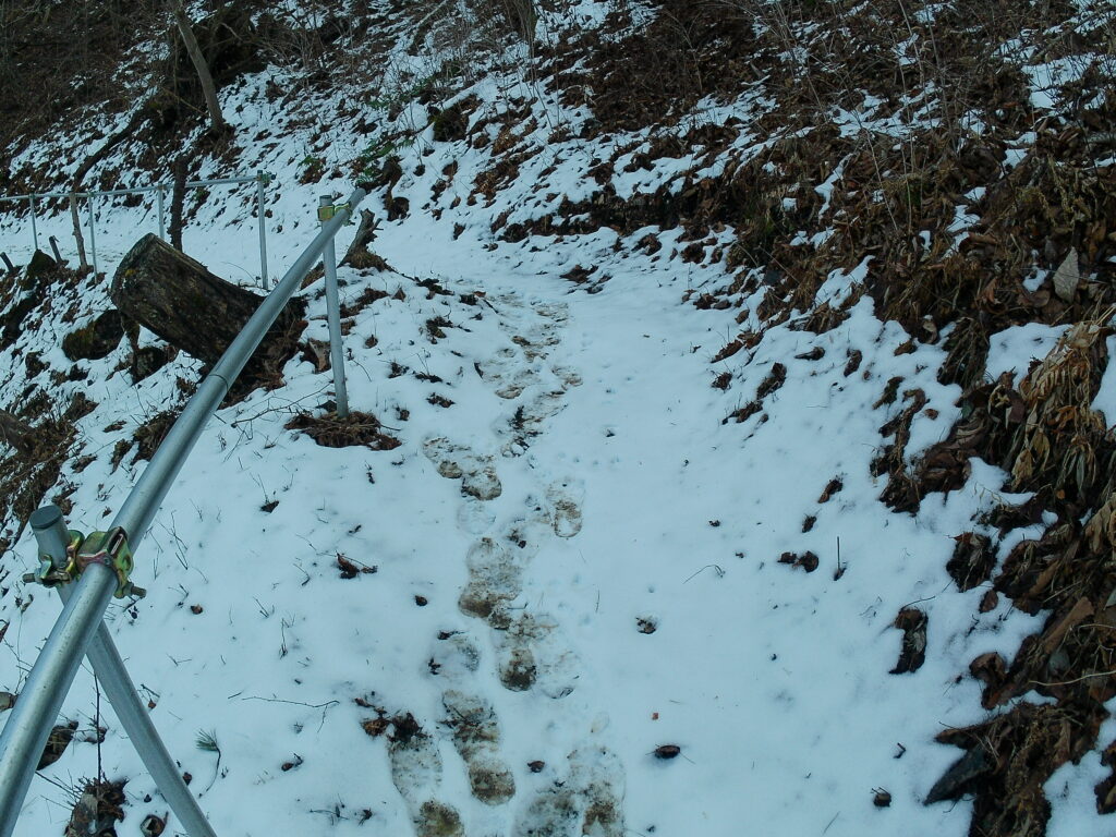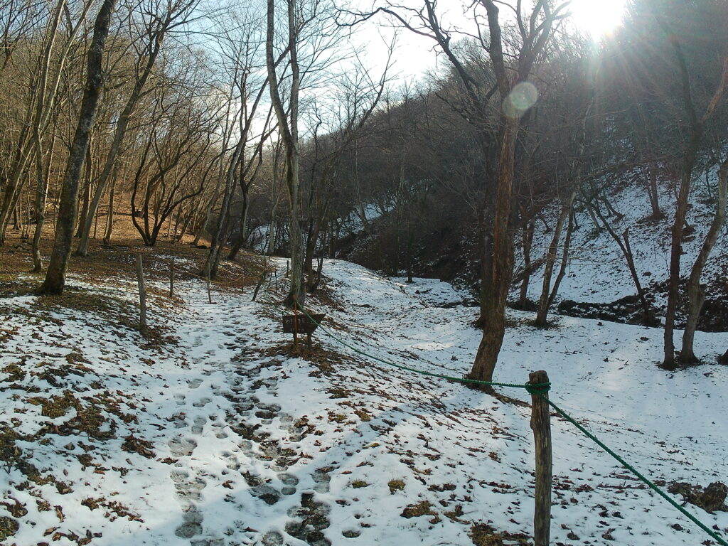 日陰の一段と雪の多いところ。ぐるりとまわって夢の沢方面へ