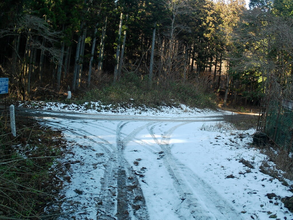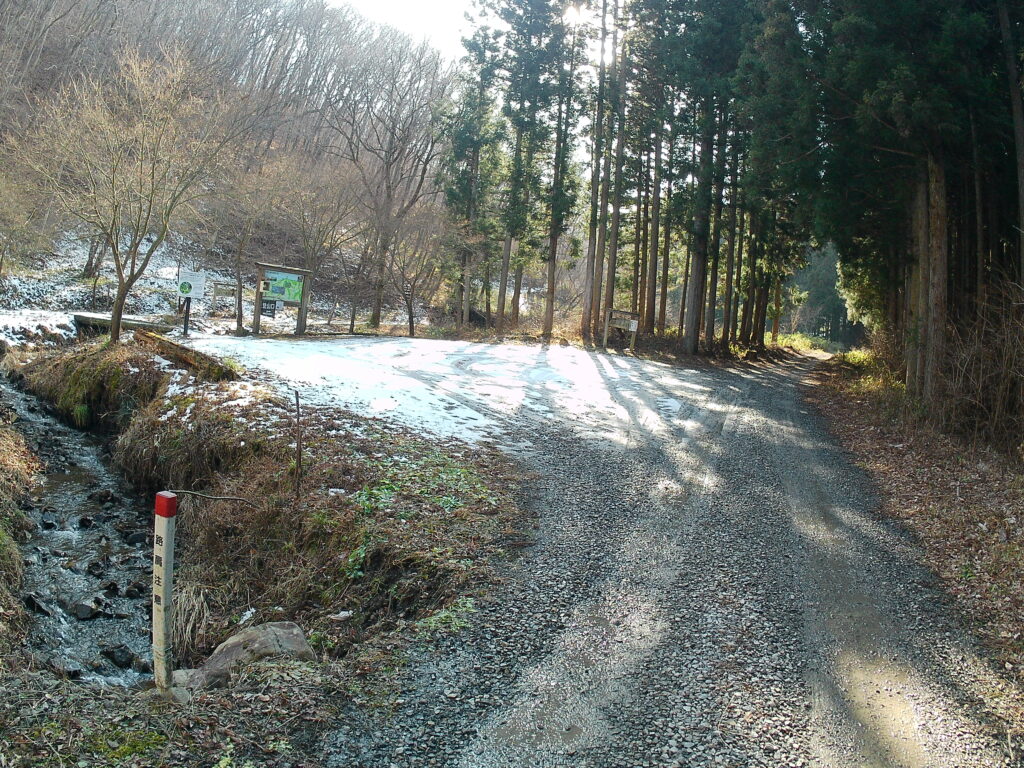 やっとこさ降ってきて、こちらが旧登山口。林道の途中になります