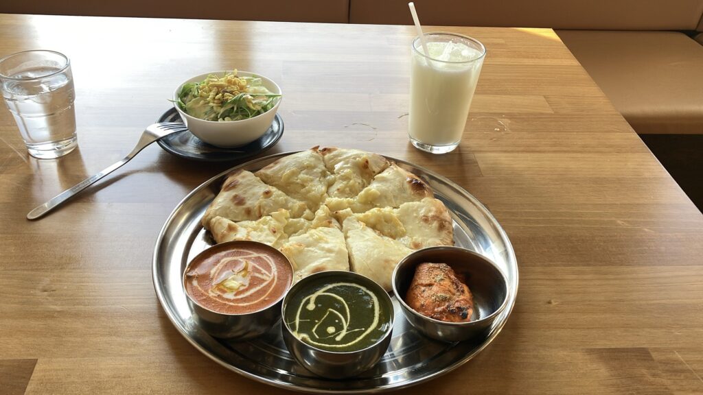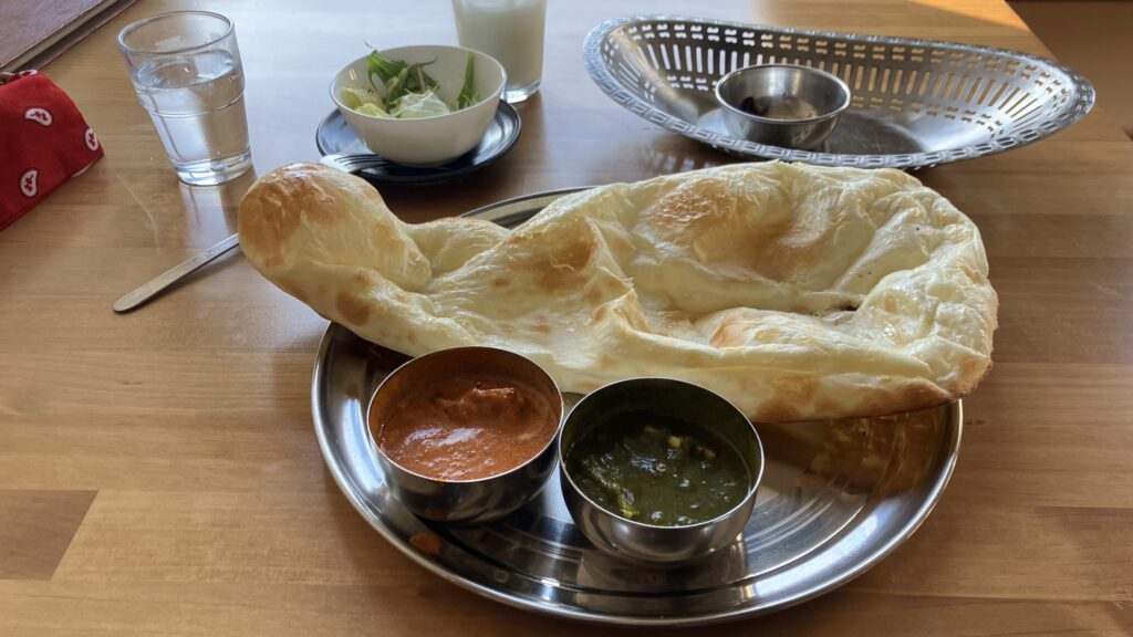 今日の下山飯は、久しぶりに食べるインドカレーとチーズナン。久しぶりの運動でだいぶカロリーも消費したと思うので、もう1枚何をおかわりしました