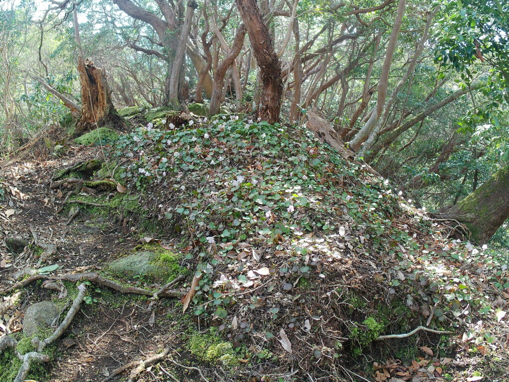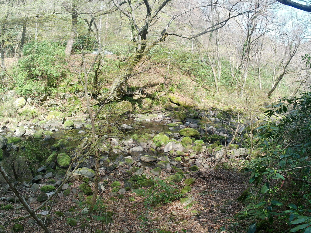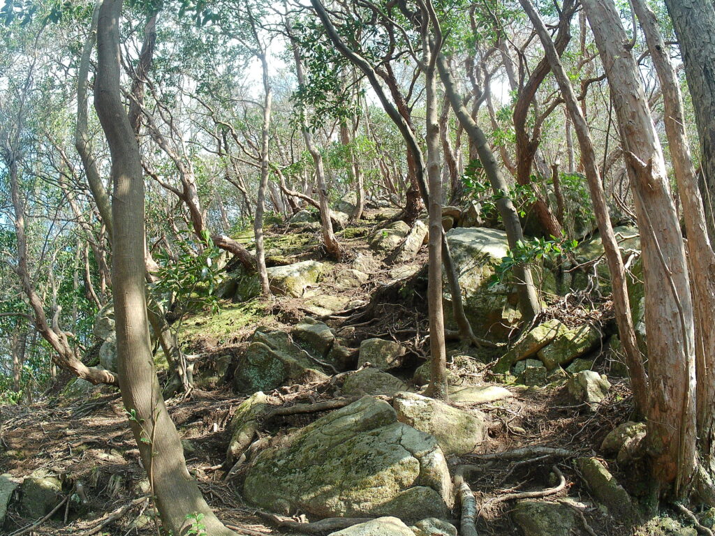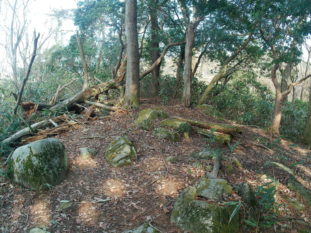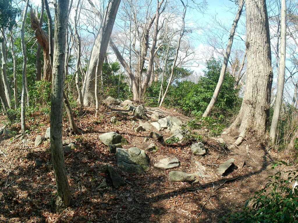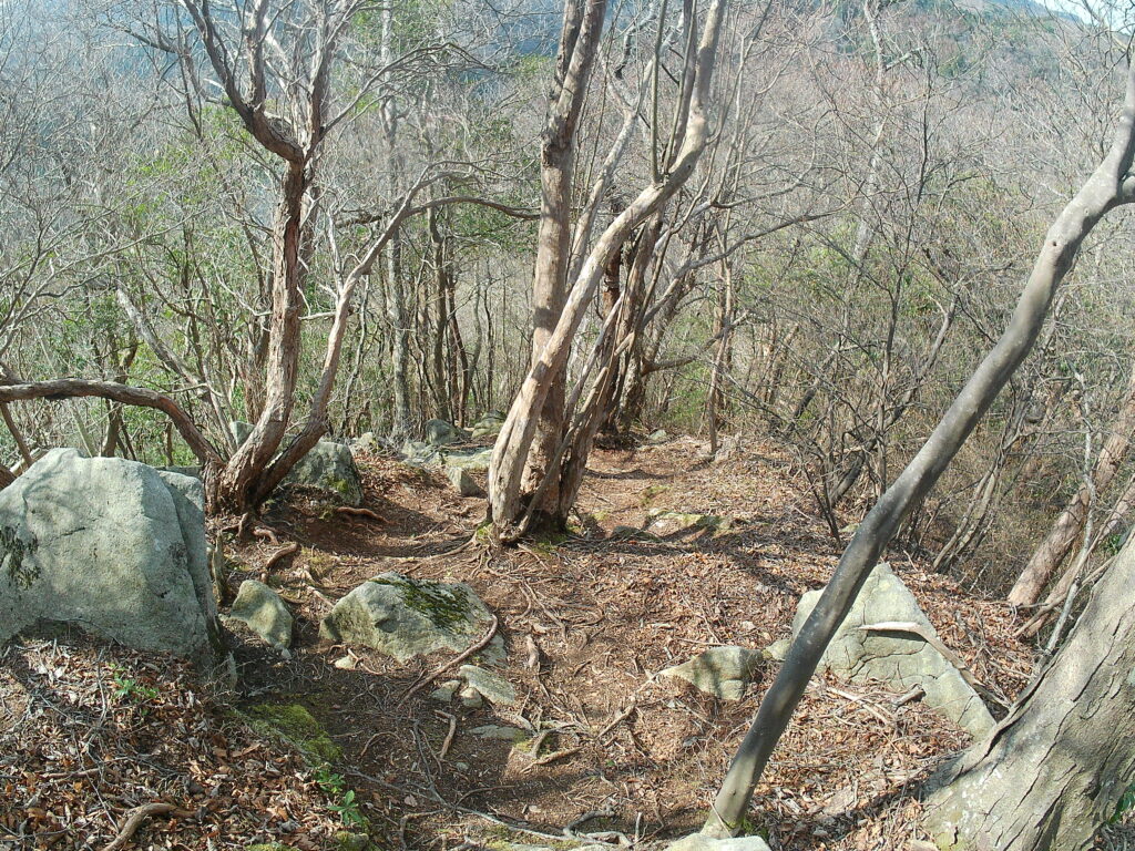 分岐から左の見晴らしの丘、少しひらけた場所に石がゴロゴロした場所です