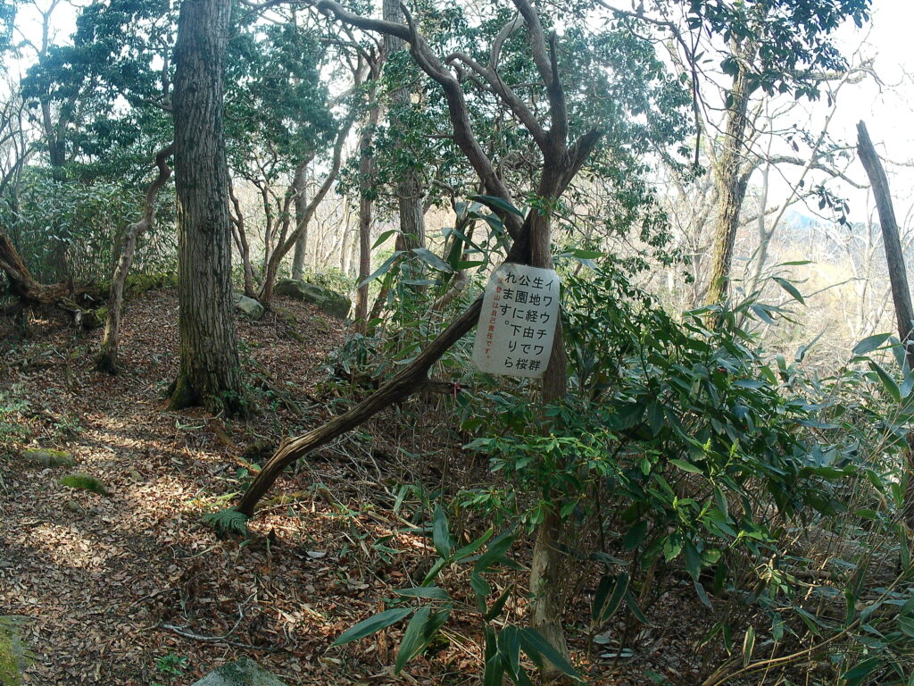 山頂、少し前でも分岐。右へ行くと山頂、左へ行くと見晴らしの丘という展望スポットがあります。共に100mも歩かないくらい