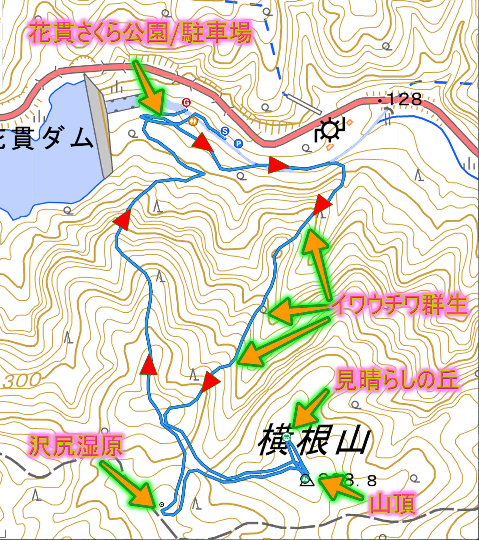 横根山の時計回りルートです